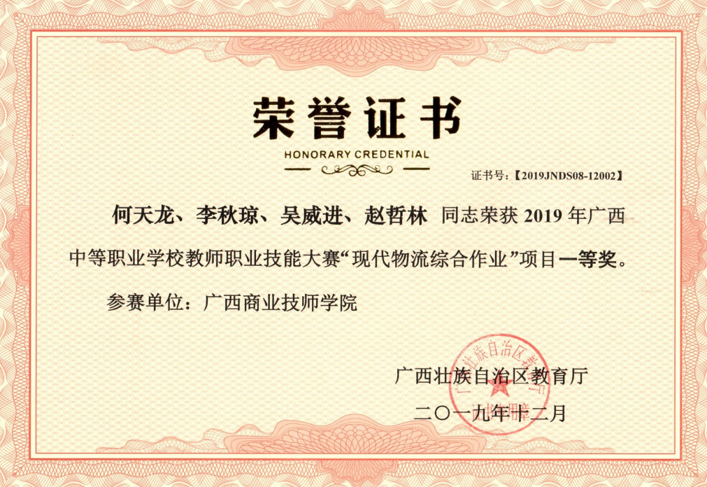 • 廣西職業院校技能大賽電子商務技術 區級一等獎